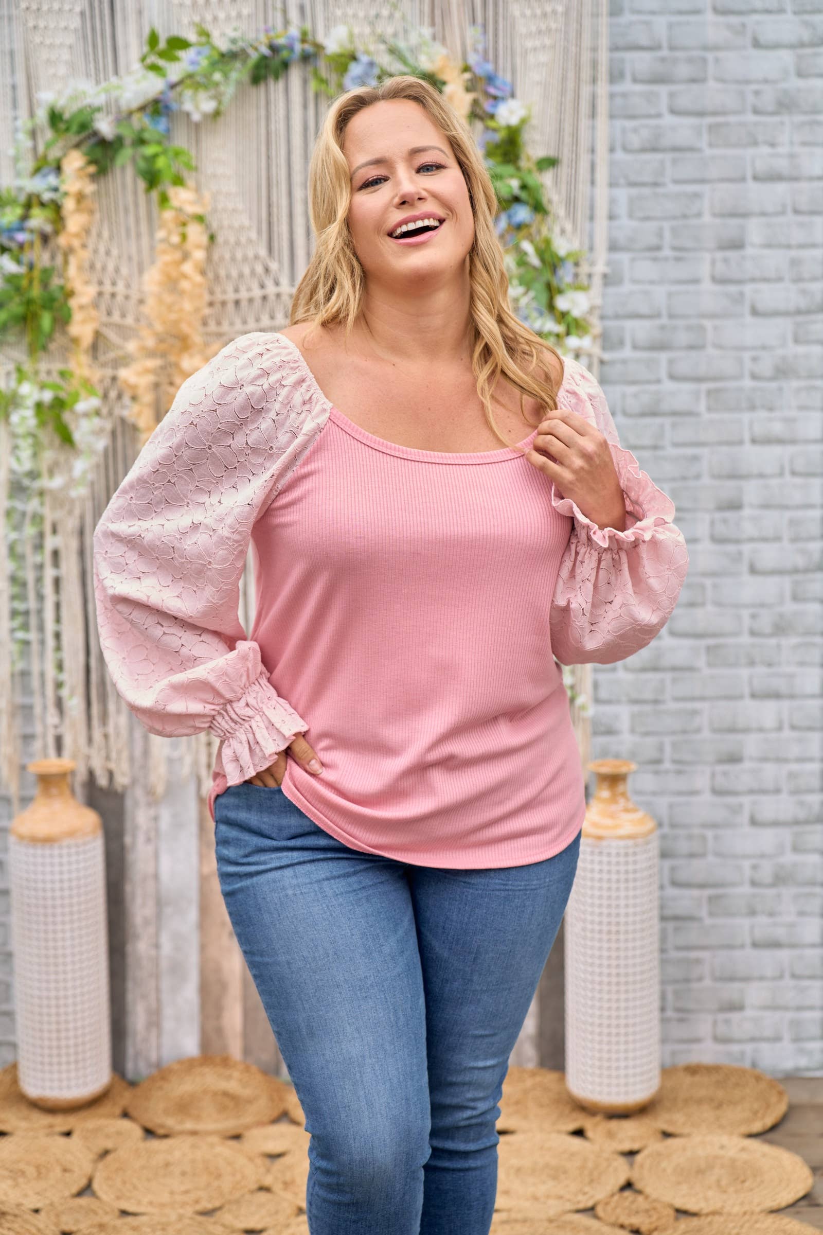 Plus curly rib-knit body with laced long-sleeve top-PLT6239B