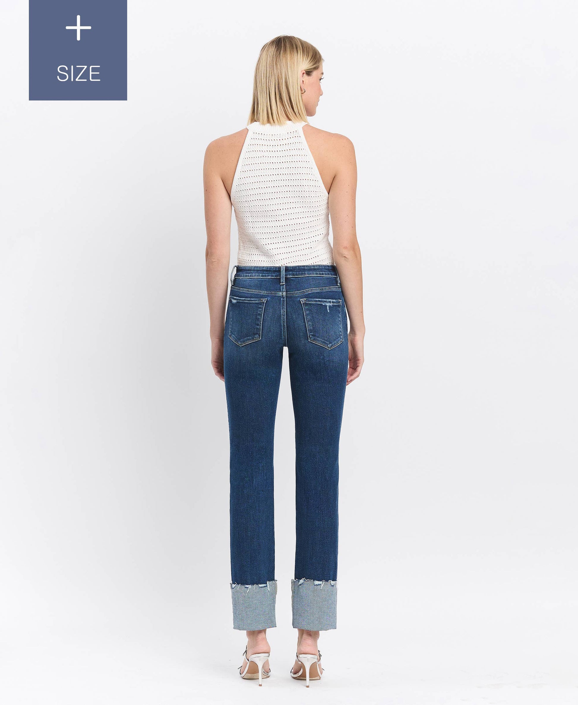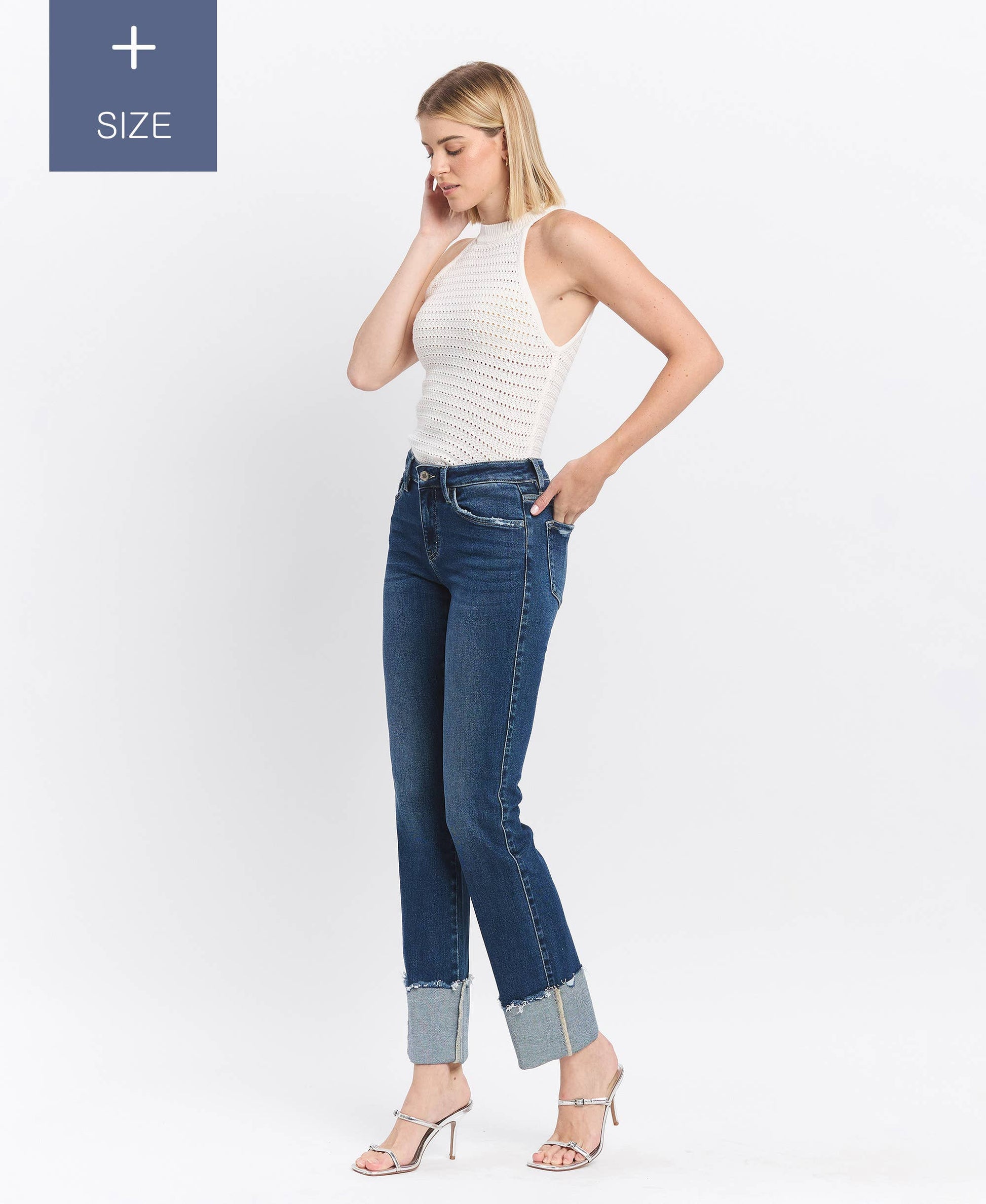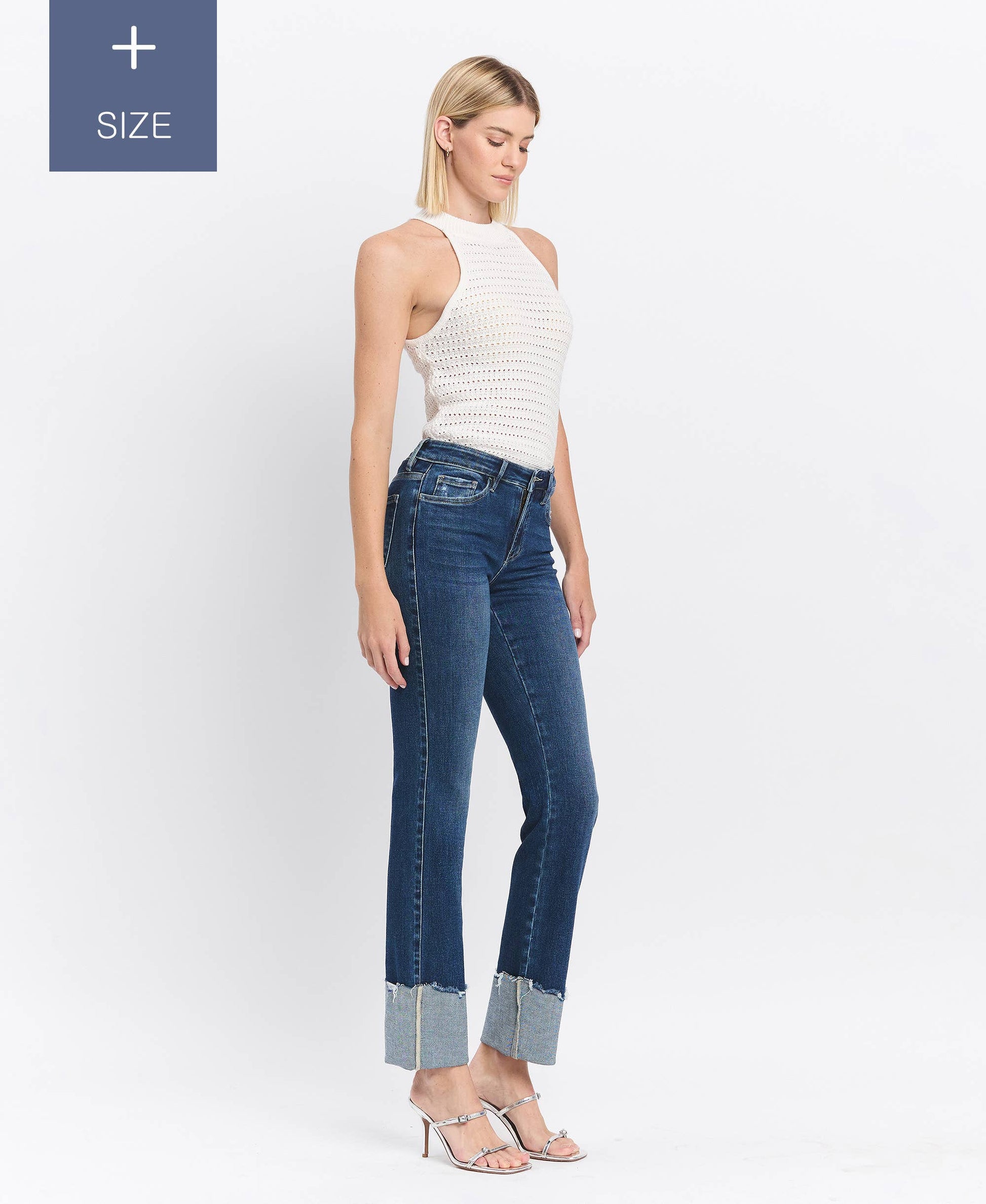 PLUS TUMMY CONTROL MID RISE CUFFED SLIM STRAIGHT JEANS